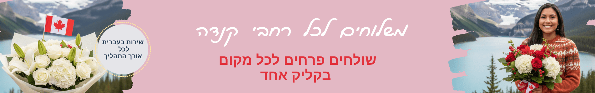 קנדה היא מדינה רחבת ידיים, ומשלוח פרחים אליה דורש לוגיסטיקה מדויקת ושירות אמין. בפרחי עירית, אנו מציעים לכם שירות משלוחי פרחים לקנדה בפריסה ארצית רחבה, עם יתרון משמעותי של מענה אנושי בעברית. אנו מלווים אתכם בכל שלב, מה שמבטיח שהמרחק הגיאוגרפי לא יפגע באיכות השירות או בטריות הזר שתשלחו.