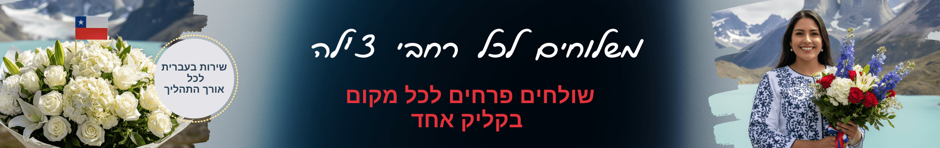 צ'ילה המרהיבה היא יעד מרגש למשלוח, ובפרחי עירית אנו דואגים שהמשלוח שלכם יהיה לא פחות ממושלם. אנו מציעים שירות משלוחי פרחים בצ'ילה המבוסס על מענה ישראלי אישי וספקים מקומיים מובילים. אנו מבינים שכל זר הוא מסר של אהבה או תודה, ולכן אנו מתחייבים לאיכות וטריות מקסימלית בפריסה רחבה בכל רחבי המדינה.