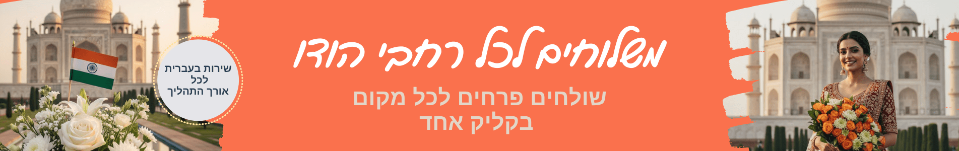הודו היא יבשת שלמה של צבעים וניחוחות, ושירות משלוחי הפרחים של פרחי עירית בהודו מאפשר לכם לשלוח מתנה מרגשת בביטחון מלא. אנו מבינים את המורכבות של משלוח למדינה כה גדולה ומגוונת, ולכן אנו מציעים מענה אנושי בעברית שמסיר כל חשש מפערי שפה או הבדלי תרבות. אנו מתחייבים לאיכות וטריות מקסימלית, תוך שימוש בספקים מקומיים מובילים המכירים היטב את הדרישות והסטנדרטים של הלקוח הישראלי.