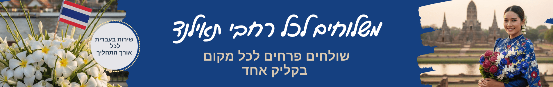 תאילנד היא מדינה של צבעים וחיוכים, ושירות משלוחי הפרחים של פרחי עירית בתאילנד מאפשר לכם לשלוח רגש וחום בביטחון מלא. אנו מבינים את המורכבות של משלוח ליעד כה רחוק, ולכן אנו מציעים מענה אנושי בעברית שמסיר כל חשש מפערי שפה או הבדלי תרבות. אנו מתחייבים לאיכות וטריות מקסימלית, תוך שימוש בספקים מקומיים מובילים המכירים היטב את האקלים המקומי.