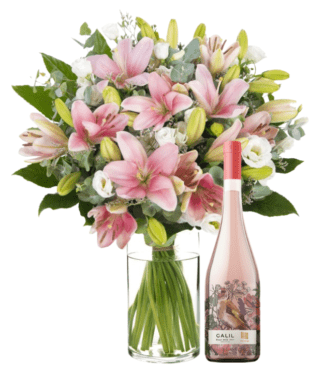 זר פסטל בבקבוקון, נר ריחני פסיפלורה ויין בלנד לבן