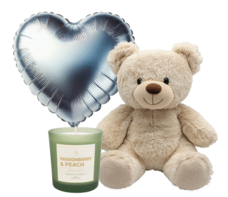 דובי ונר ריחני עם בלון לב כסוף