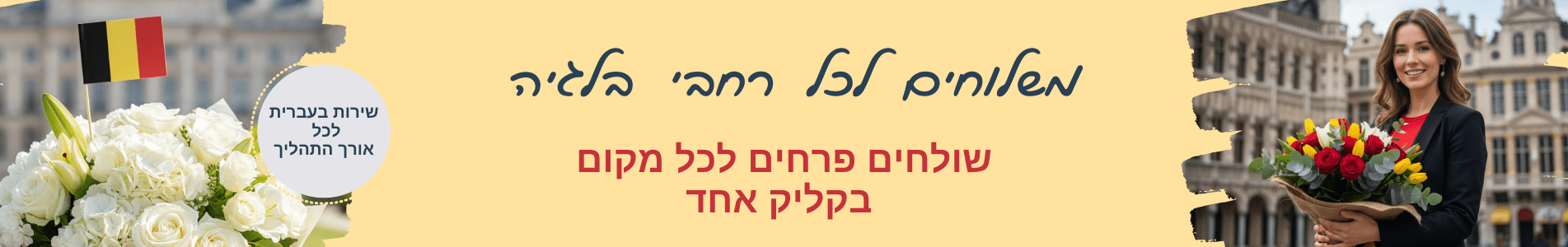 בלגיה היא מרכז אירופה, ושירות משלוחי הפרחים של פרחי עירית בבלגיה מציע את השילוב המושלם בין יוקרה אירופאית לשירות ישראלי אישי. אנו מתחייבים לשימוש בספקים מקומיים מובילים המבטיחים טריות מקסימלית ועיצובים מרהיבים. עם המענה האנושי שלנו בעברית, אתם יכולים להיות בטוחים שהמסר שלכם יעבור בצורה המושלמת ביותר.