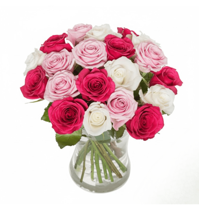 זר ורדים ורודים, לבנים ודובדבן המבטא הערכה והערצה עמוקה.