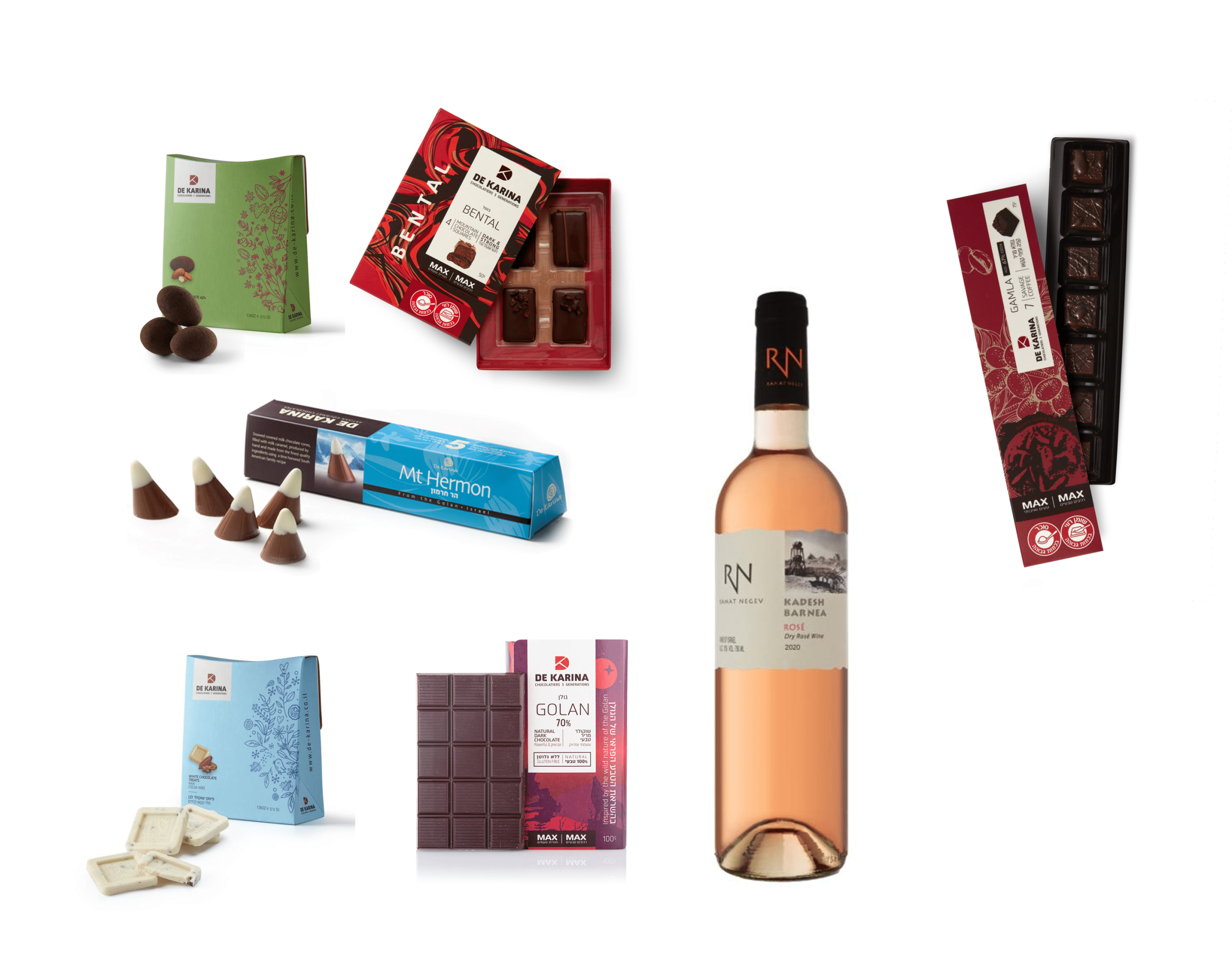מארז שי המכיל מבחר שוקולדים מבית בוטיק דה קרינה השוכן ברמת הגולן לצד בקבוק יין רוזה של יקב רמת נגב המשובח. הזמינו עכשיו באתר ותוכלו להינות ממגוון הטבות מיוחדות ומשלוח מהיר.
